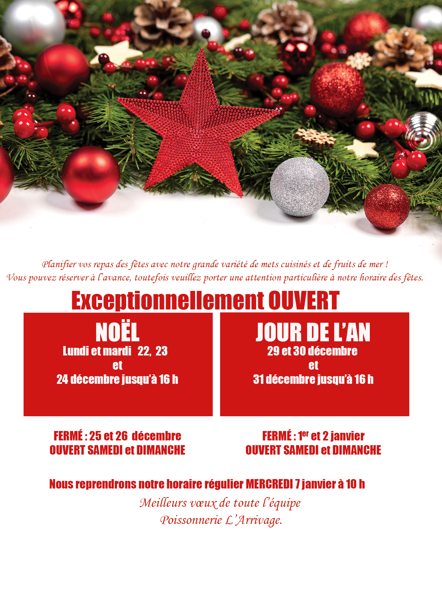 Nous FERMERONS les DIMANCHES